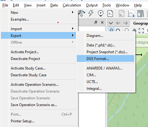 With the folder now available in PowerFactory, make sure you have your project activated then export the network to DGS,